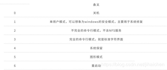 1 | vi /etc/inittab id=3:initdefault //系统开机后直接进入哪个运行级别 |
